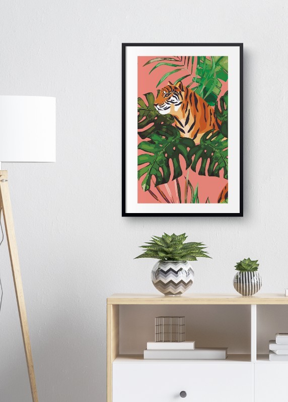 Home  / Poster  / Insetti & Animali  / Poster di animali selvaggi  / Tiger with Palm Leaves