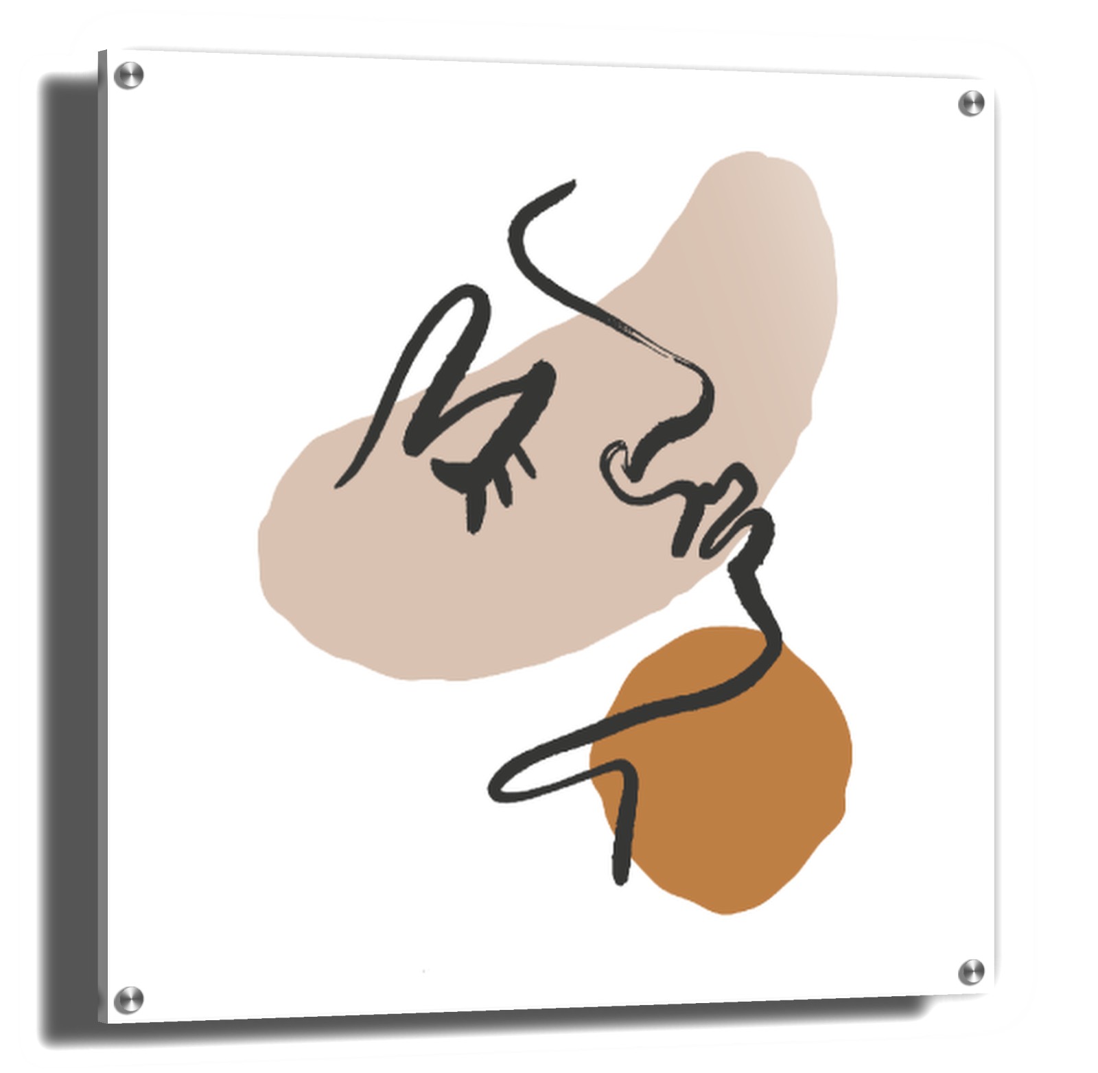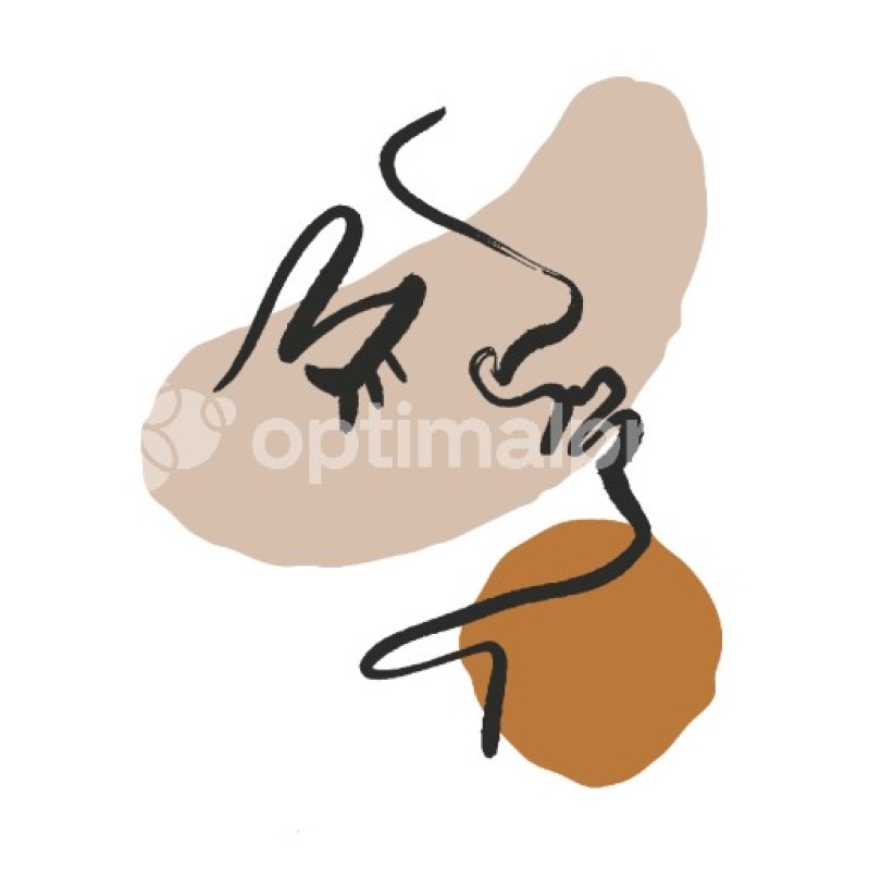 Ritratto astratto del viso di donna con due forme marroni su uno sfondo bianco. La stampa minimalista di arte astratta si adatterà a qualsiasi collezione della tua casa. Sia appeso da solo o come parte di una collezione sulla galleria da parete.