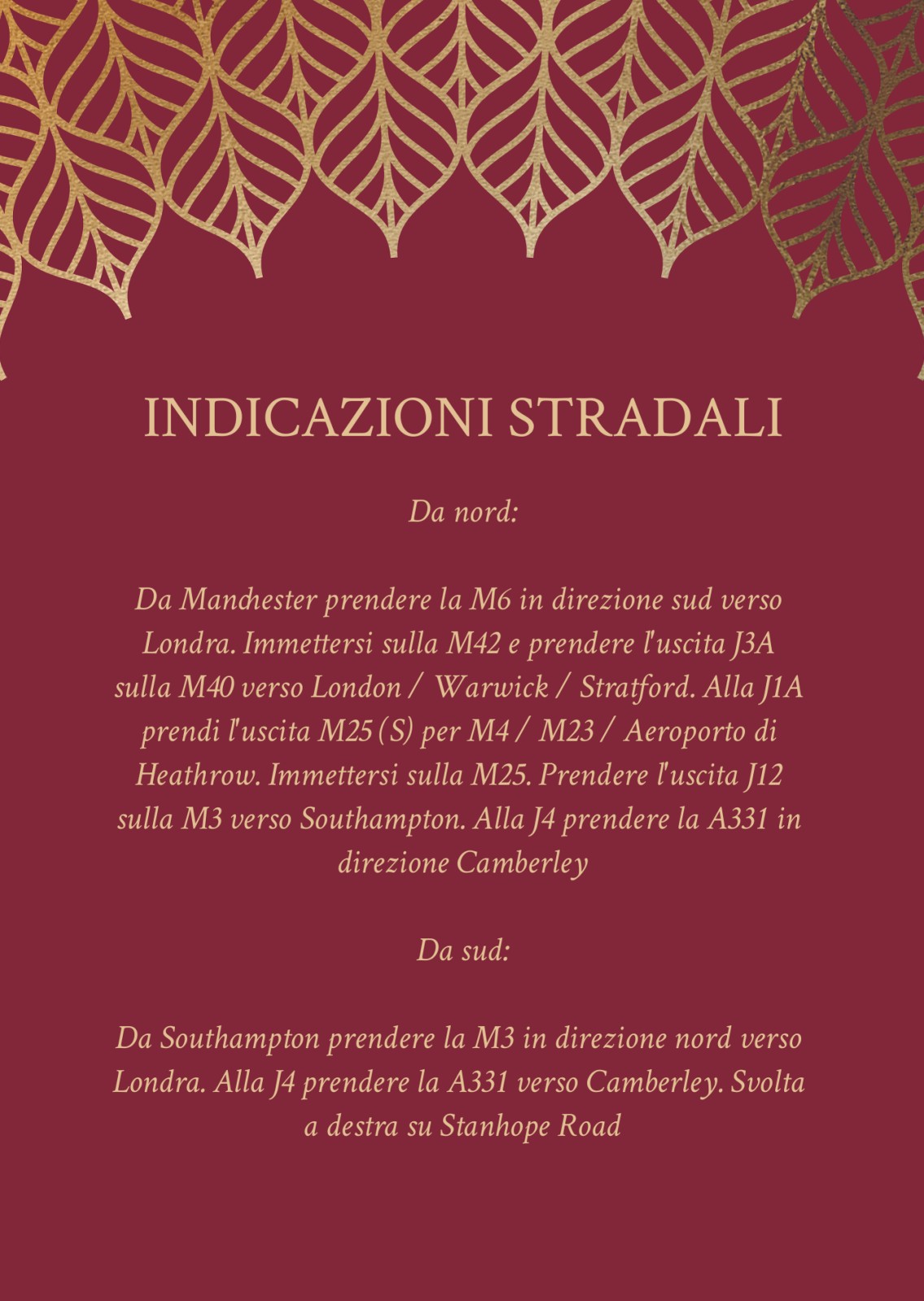 Indicazioni stradali per inviti a nozze e feste