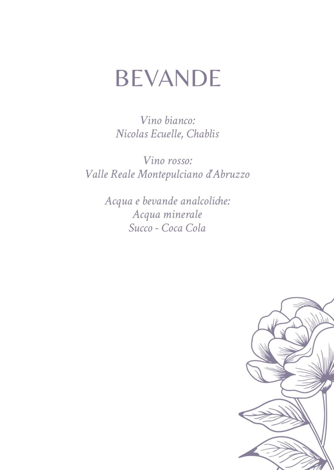 Biglietti del menu di matrimonio
