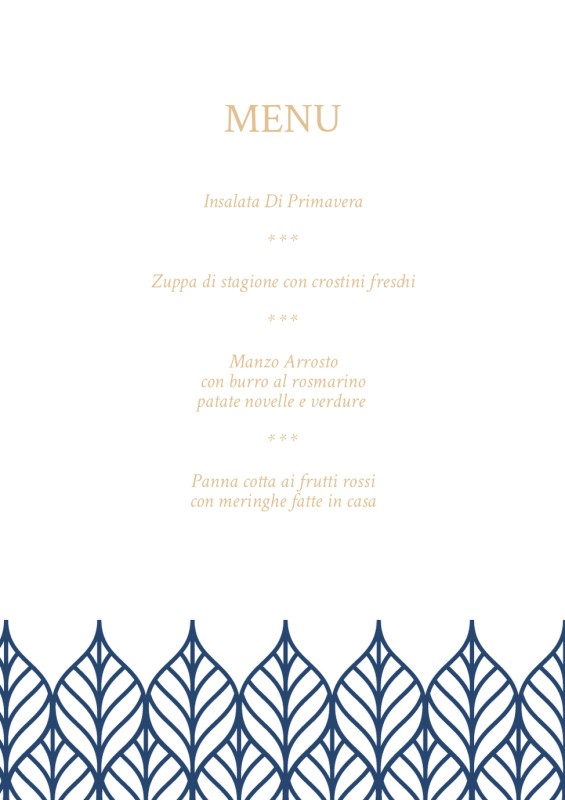 Biglietti del menu di matrimonio
