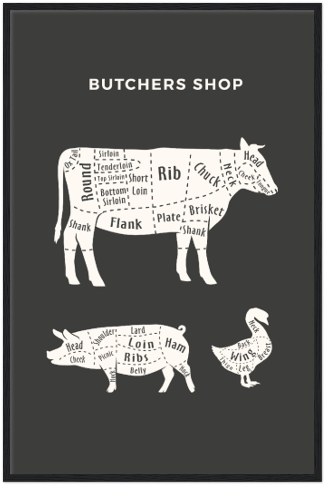 nero, mucca, diagramma, cucina, carne, maiale, bianco, anatra, art-prints/animals, art-print-illustration